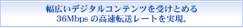 ブルーレイディスクは、メディアとしての転送レート36Mbpsを実現しています。転送レートとは、1秒あたりにメディアへ記録(またはメディアから再生)できるデータ伝送量のことで、数値が高いほど扱える情報量は多くなります。BSデジタルハイビジョン放送の転送レートは最大24Mbps。つまり36Mbpsのレートを持つブルーレイディスクは、余裕を持って高精細な映像を録画、再生できるのです。