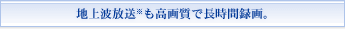 の録画時にも、MPEG-2 TS方式で記録します。MPEG-2ビデオのMP@MLで規定されている最大レート(15Mbps)まで対応していますので、地上波放送も高画質で約3時間録画することができます。また、VHSビデオの標準モード相当であれば約12時間の長時間録画が可能です。