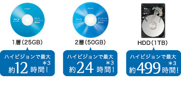 ※最大録画タイトル数の制限から表記の録画時間まで録画できない場合があります