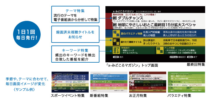 製品情報>ブルーレイディスクレコーダー>商品ラインアップ>プレステージモデル X>BDZ-X100>特長 | 番組を探す・録る機能