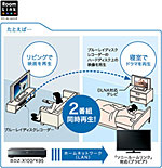 「ソニールームリンク」対応のテレビやパソコンをホームネットワーク(LAN)でつなげば、HDDに記録されている番組や写真を、他の部屋からも再生可能。しかも、それぞれの部屋で別々の番組でもハイビジョン画質のまま同時に楽しめます。 「ソニールームリンク」とは、DLNAなどのホームネットワークを介してさまざまな機器をつなぎ、動画・音楽・写真などの楽しみ方を広げるソニー商品の機能名称です。