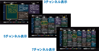 デジタル放送の番組を7チャンネル一覧表示。