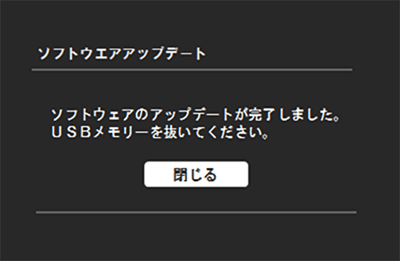 3.4.7. 「2.1. アップデートファイルの説明」に掲載されている、本体アップデート後のバージョンと同じであれば、正常にアップデートされています。