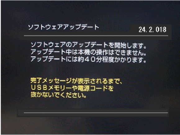 3.4.2. アップデート中、本機前面の表示管に”UPDATE xx%”が点滅表示されます。
