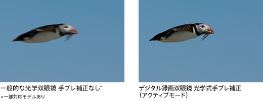 ソニーの“ハンディカム”“サイバーショット”で搭載の「アクティブ手ブレ補正」技術を、本機にも搭載。これまでの双眼鏡ではブレが大きく見づらかった高倍率時も快適に観察できます。高速で移動する被写体も視野にぴったりと納まるように映像をとらえることができ、手ブレのない鮮明な映像を見て、記録することができます。レンズを縦、横方向に補正する光学式手ブレ補正にくわえて、画像処理エンジンBIONZにより回転方向のブレも補正します。