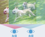 通常、人は左右の目の間隔を利用し、目の前にあるものを左右で異なった角度から見ています。そして、左右の目から入った2つのイメージを頭の中で合成することで、奥行き感、立体感を認識しているのです。この「両眼視差」と呼ばれる仕組みを、3D映像は応用しています。