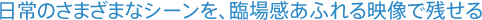 3D映像の魅力は、その場にいるかのような臨場感。“ブロギー3D”はポケットサイズなので、気軽に持ち歩いて日常のさまざまなシーンを臨場感あふれる3D映像で残せます。