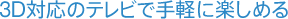 *1 3D映像を見るには3D対応テレビと3D対応アクセサリーが必要です。詳しくはお持ちの3D対応テレビの取扱説明書をご確認ください