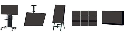 薄型・軽量、そして狭額縁のシンプルなデザイン。横置き・縦置き・傾斜設置に対応し、さまざまな空間にフィットします。会議室では壁掛けや移動式スタンドで省スペース設置が可能。商業施設では天吊りや縦型設置により、視認性を高め、サイネージ効果を最大化します。4辺均等のスリムベゼルが生み出す一体感は、複数台の並列設置にも最適。さらに、壁掛けユニットの取付穴をセンター設計にすることで、縦置きスタンドや金具設置時もバランスよく、スムーズな施工を実現します。多様な設置スタイルに対応し、オフィス・店舗・公共施設など、さまざまなシーンで活躍します。