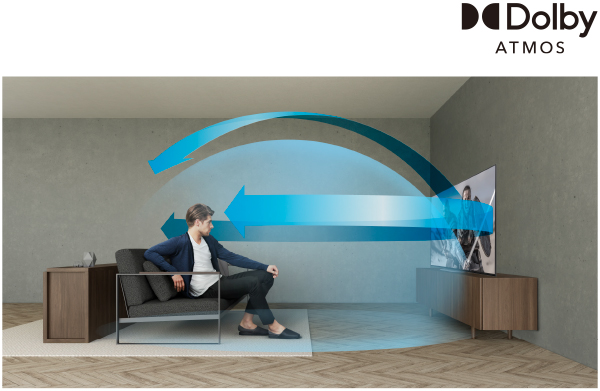 前後左右に加え、高さ方向の音表現も可能にする立体音響技術「ドルビーアトモス」に対応。従来、立体音響を楽しむには天井を含むさまざまな場所にスピーカーを設置する必要がありました。ブラビアでは、最新の音声処理システムにより、ディスプレイ本体のスピーカーでかんたんに3次元の立体音響を体感できます。