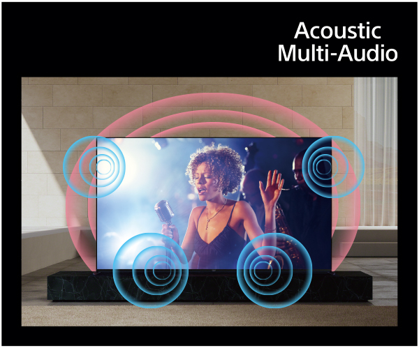 認知特性プロセッサー「XR」は音の信号処理も可能になり、あらゆる音源を3次元の立体音響に変換。ソニー独自のアコースティック技術と合わさることで、まるで映像から音が出ているかのような臨場感のあるサウンドで楽しめます。