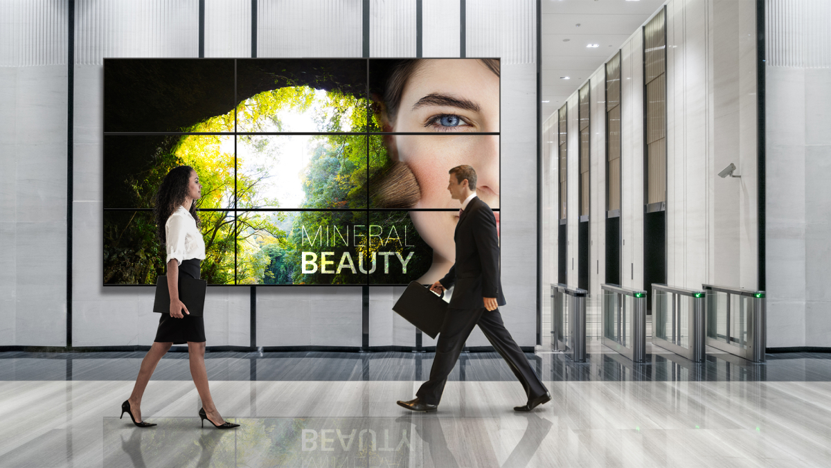情報処理能力の高い4K高画質プロセッサーの優れた解析能力で高精細・広色域・高コントラストの映像を実現。見る人の心を動かす「伝わる高画質」を実現します。感性に響く映像美で、商業施設や店舗を訪れた人の購買欲をダイレクトに刺激。「販促の即戦力」としての効果を期待できます。