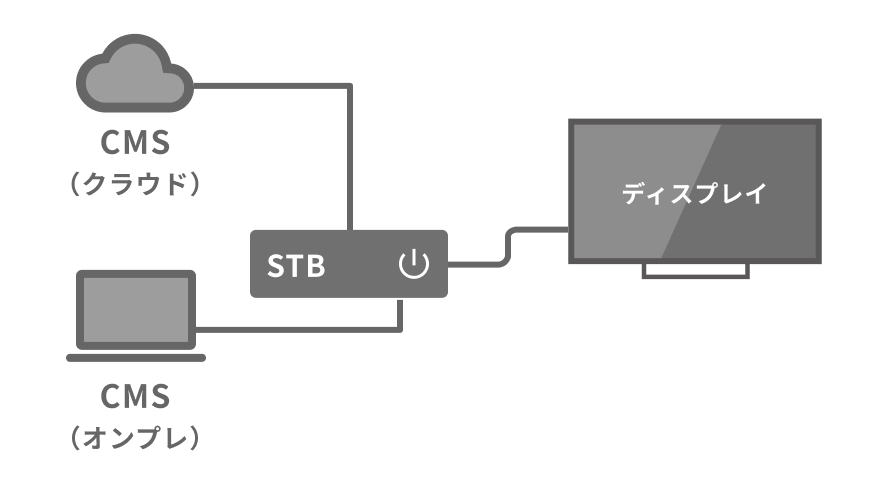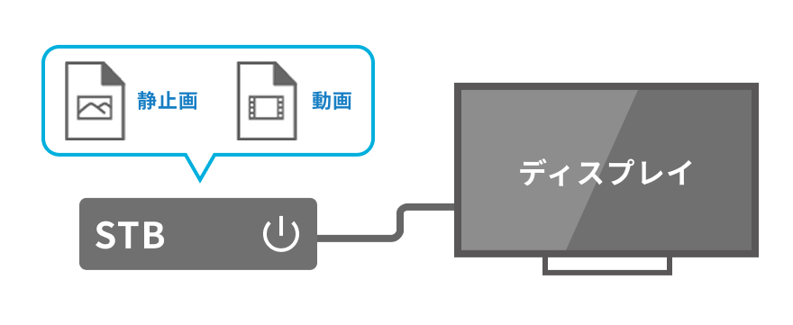 ディスプレイに映像を映すための表示・再生機器です。コンテンツの表示スケジュールやディスプレイの電源のオン・オフなども設定できます。ただし、STBを置くためのスペースや電源を確保する必要があるので、設置場所を考える際は注意しましょう。