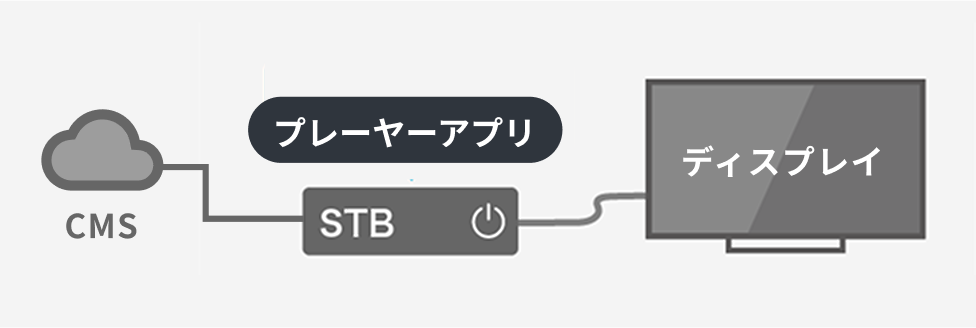 デジタルサイネージにおいては、ディスプレイと接続することで、 STBに配信されたコンテンツをディスプレイに表示することができます。