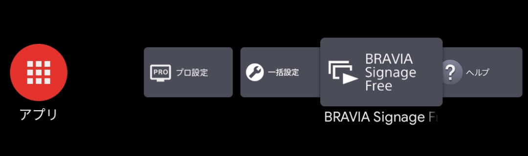 BRAVIA Signage Freeアプリが搭載されていないため、アイコンは表示されません。