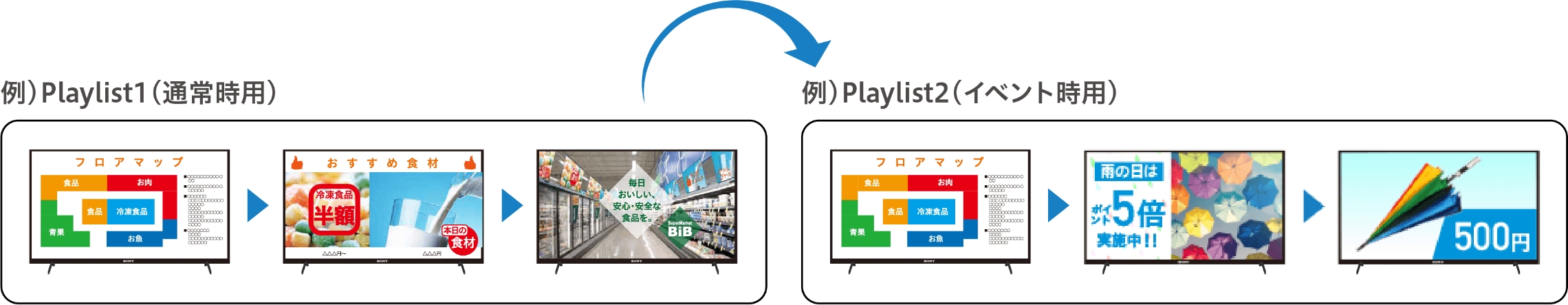 指定した日付や曜日、時間帯であらかじめ作成したプレイリストを再生できます。