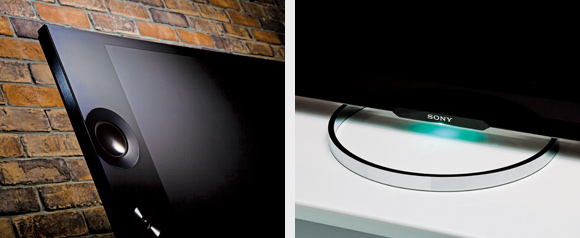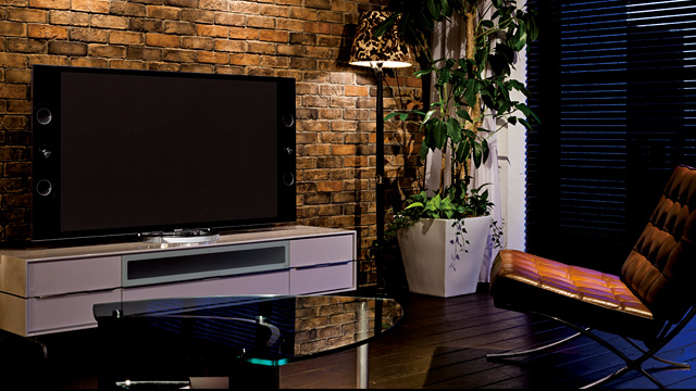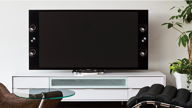さらに〈ブラビア〉X9200Aで注目したいのが、テレビの域を超えたそのサウンドだ。従来の薄型テレビでは、薄さや見た目を追求した結果、前面にスピーカーを見せないデザインが主流となり、音質が二の次になることも少なくなかった。これに対して〈ブラビア〉X9200Aではスピーカーをあえて前面に押し出し、左右に配置。ディスプレイと一体化させたデザインで、スピーカーがスマートな存在感を醸し出している。
