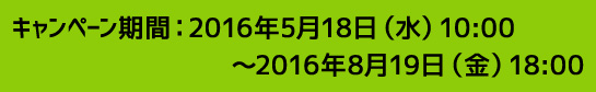 2016年5月18日(水)10:00〜2016年8月19日(金)18:00までにキャンペーン応募完了分
