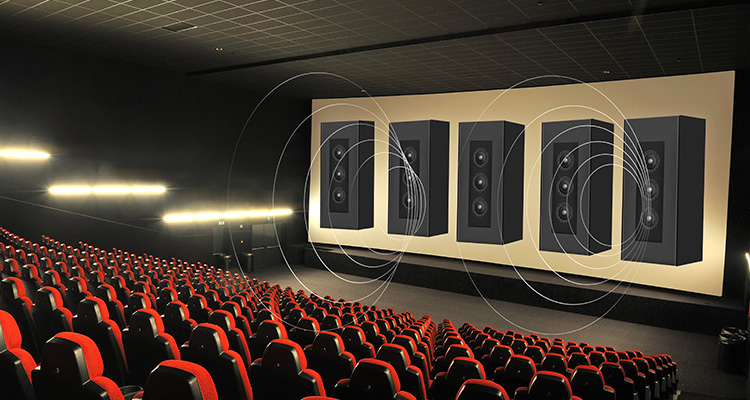 映像と音を融合する仕組みは多くの映画館で採用されています。映画館では細かい無数の穴が開いたスクリーンの真後ろにスピーカーを配置し、そこから出る音を前方へ通すことで、セリフや音などが、映像と重なって聞こえるように設計しています。この理想的な映像と音の融合をテレビで実現するのが、ソニーの有機ELテレビです。