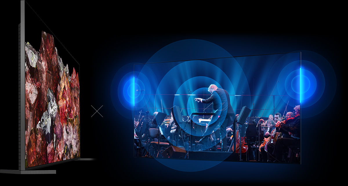 フレームそのものから高音域の音を出し、音と映像の一体感をさらに強化したソニー独自の音響技術「アコースティック マルチ オーディオ プラス」を新たに採用。