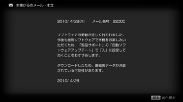 地上デジタル放送及びBSデジタル放送を使ったソフトウェアダウンロードによるバージョンアップです。