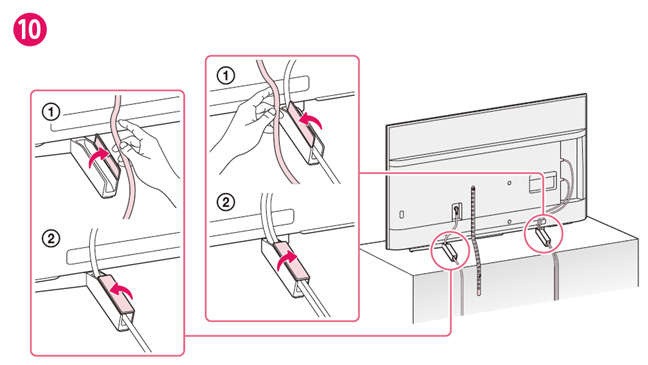 表面:(10) スタンドのケーブル収納部の蓋の開閉方向