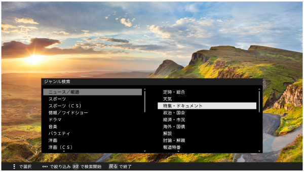 これから放送する予定の番組をジャンル別に絞り込み(メインジャンル、サブジャンルを選択)してから、録画したい番組をそのまま予約できます。