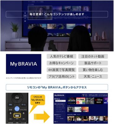 人気のテレビ番組や、話題のネット動画などをご紹介。ニュース・天気・ショッピング、ブラビアの便利な使い方まで幅広い体験が楽しめます。