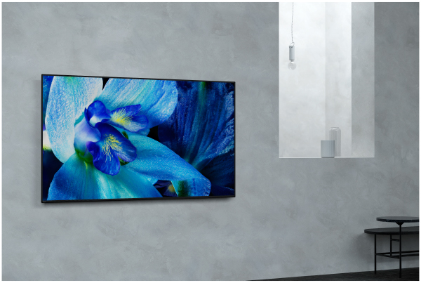 最上位機種の基本性能を踏襲しながらも、テーブルトップ設置時の奥行を約290mmまでスリム化。さまざまな場所にすっきり設置できるデザインで、スタイリッシュな壁掛けスタイルも可能です。ベゼルは限りなく薄く、スピーカーも前面から見えない構造にすることで映像への没入感を高めています。