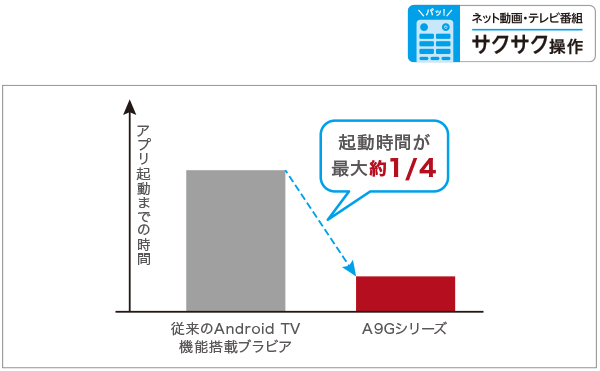 ※ 従来のAndroid TV 機能搭載ブラビアと比較して算出した参考数値。実際の使用環境やソフトウェアバージョンにより、速度は異なる可能性があります