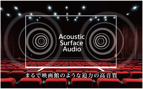 画面そのものから音が出る「アコースティック サーフェス オーディオ」を搭載。本体背面に配置したアクチュエーターが被写体の位置に合わせた音を作り出すことで、スリムなデザインでありながらもクリアな音質を実現。高音域の明瞭感を重視し、セリフや歌声もよりクリアに再現。その場にいるような空気感までも感じることができる、映像体験を実現します。