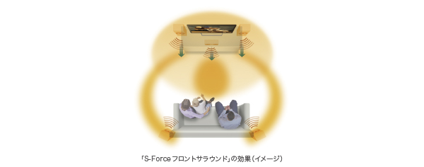 映画館で使われているマルチサラウンドスピーカーシステムの音場をテレビのスピーカーだけでバーチャルに再現。5.1ch入力信号をそのままダイレクトで5.1ch出力が可能なため横から後ろへと音が移動する立体的な音場を体感できます。