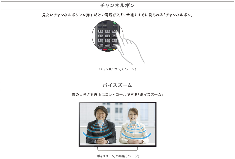 そんな方におすすめの機能が「チャンネルポン」。リモコンのチャンネルボタン(数字ボタン)で電源が入り、見たい番組をすぐに視聴できます。