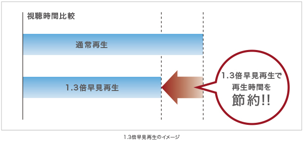 再生ボタンを長押しすると、音声を流したまま1.3倍の早さで再生します。番組を短い時間で視聴できます。