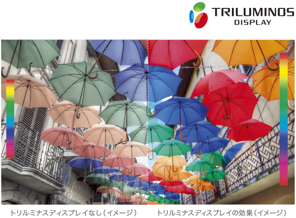 「トリルミナスディスプレイ」を採用。色再現領域を拡大することで幅広い色の表現を可能にしました。これにより、今まで表現しきれなかった繊細な色のニュアンスや、人肌のみずみずしい質感までも描き出します。