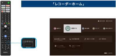 リモコンの「レコーダーホーム」ボタンから、ソニーのブルーレイディスクレコーダーのホーム画面にワンプッシュで移動でき(*2)、そのまま画面上の操作ができます。