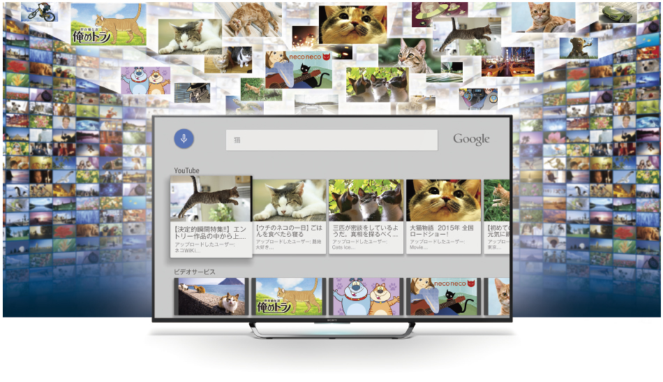 ※ Android TV機能の利用にはブロードバンド接続環境(ADSL、FTTH、CATVなど。FTTHを推奨)が必要です。プロバイダーや回線業者との契約・使用料は別途必要です。回線業者やプロバイダーが採用している接続方式・契約約款により、利用できない場合があります。天災、システム障害その他の事由によりサービスを表示できない場合があります。コンテンツは無料のものと有料のものがあります。また、ハイビジョン画質ではないものがあります。各サービスは予告なく変更・停止・ 終了する場合があります。第三者が提供するサービスについて、ソニーはいかなる責任も負いかねますのであらかじめご了承ください