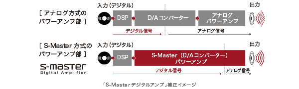 小型・高効率のデジタルアンプ「S-Master」をテレビ用に最適化して搭載しました。「S-Master」は、デジタルからアナログ変換の過程における情報の欠落を低減。音質劣化が少ない忠実な音を、自然でクリアに再現します。