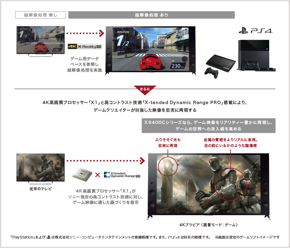 超解像処理の際に、ゲーム用のデータベースを参照し、ゲームに最適な画質を再現します。また、画像処理で発生する映像遅延を短縮することで、ストレスのない快適なゲーム体験を実現しました。シビアなタイミングが要求されるゲームであっても、プレイヤーの意図をダイレクトにプレイに反映することが可能です。