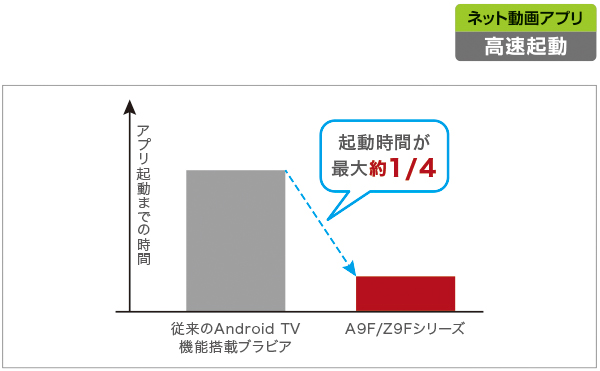 ※ 従来のAndroid TV 機能搭載ブラビアと比較して算出した参考数値。実際の使用環境やソフトウェアバージョンにより、速度は異なる可能性があります