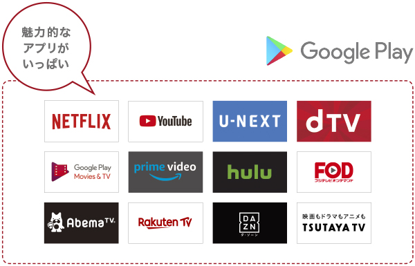 動画や音楽、ゲーム、ショッピングなど好きなアプリを自由に追加して楽しめるのが「Android TV(TM) アプリ」。4K高画質映像を配信しているアプリも豊富にそろっているので、4Kコンテンツを楽しめます。