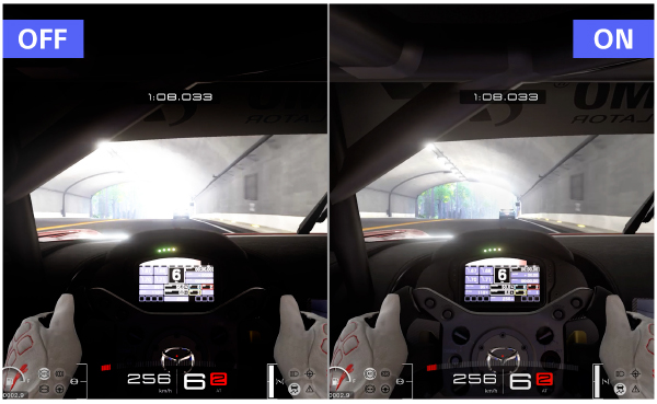 それぞれのモデルに合わせて最適なHDR調整を自動で行うので、明るいシーンと暗いシーンそれぞれで情報をしっかりと映し出すことが可能です。