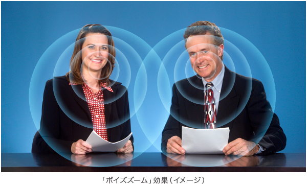 「ボイスズーム」機能を使えば、全体の音の大きさを変えず、人の声をよりクリアにし、音量も変えることが可能です。たとえば、ニュースキャスターの声が聞きづらい時に、声の音量を大きくして聞き取りやすくできます。また、スポーツ中継などで、実況や解説の声が大きすぎる場合は、声の音量だけを小さくすることも可能です。この従来の機能に加えて、「ボイスズーム2」では、人の声の特徴を検出して的確に母音・子音の違いを認識し、それぞれを適切に強調するアルゴリズムを搭載することにより、声の明瞭度が向上しています。