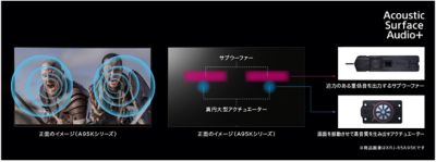 ブラビア初の大型有機ELテレビ「A1シリーズ」から続く歴史あるソニー独自の音響技術、画面そのものから高音質を創出する「アコースティック サーフェス オーディオ プラス」を採用。アクチュエーターが画面を振動させることで、被写体の位置に合わせた音を作り出し、画面から直接届くリアリティーのあるサウンドを実現。スリムなデザインでありながらも、包み込まれるような音で、その場にいるかのような映像体験を実現します。