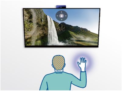 付属のブラビアカムを繋げれば、テレビに向かってジェスチャーをするだけで、リモコンいらずで操作が可能です。 ※ ジェスチャーを送るとテレビ画面上に操作方法が表示されます