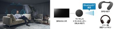 BRAVIA XRとワイヤレストランスミッター(SRS-NS7同梱)を接続し、SRS-NS7や対応ヘッドホンを接続することで、周りの環境を気にせずに、前後左右を中心とした従来のサラウンド音場に高さ方向の表現力を加えた立体音響で、映像をお楽しみいただけます。専用アプリ「Headphones Connect」や「360 Spatial Sound Personalizer」を使って撮影した耳の画像を、独自に開発した推定アルゴリズムにより個人の聴感特性を解析することで、音場を一人一人に最適化した、より臨場感ある体験を実現します。