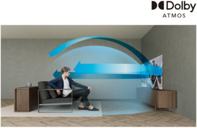 前後左右に加え、高さ方向の音表現も可能にする立体音響技術「ドルビーアトモス」に対応。従来、立体音響を楽しむには天井を含むさまざまな場所にスピーカーを設置する必要がありました。ブラビアでは、最新の音声処理システムにより、テレビ本体のスピーカーでかんたんに3次元の立体音響を体感できます。