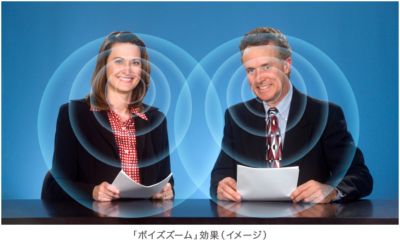 「ボイスズーム」機能を使えば、全体の音の大きさを変えず、人の声をよりクリアにし、音量も変えることが可能です。たとえば、ニュースキャスターの声が聞きづらい時に、声の音量を大きくして聞き取りやすくできます。また、スポーツ中継などで、実況や解説の声が大きすぎる場合は、声の音量だけを小さくすることも可能です。この従来の機能に加えて、「ボイスズーム2」では、人の声の特徴を検出して的確に母音・子音の違いを認識し、それぞれを適切に強調するアルゴリズムを搭載することにより、声の明瞭度が向上しています。