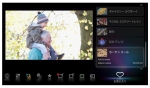 視聴中のテレビ画面を少し縮小し、画面の下部に再生可能なカテゴリーや各種機能アイコンを配置。
