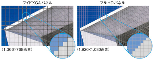 ハイビジョン放送(1080i)の解像度をそのまま再現できる「フルHDパネル(水平1,920×垂直1,080画素)」を搭載。より緻密でなめらかな映像を再現します。
